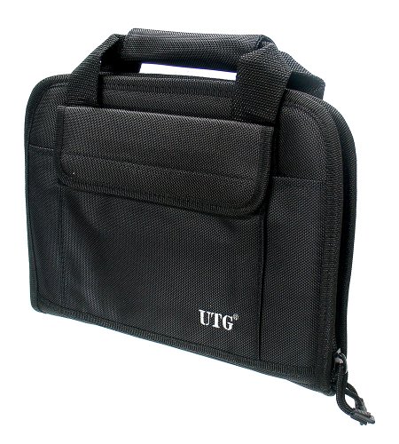 1. Hmmm... UTG Deluxe Pistol Case... Was not what I expected. I purchased this bag feeling a little iffy but wanted a slim bag to hold at least one firearm and items for a light day at the range. But what I got was quite the opposite. I was able to loaded up this sleek case to hold my XD9 4" and my Sig Sauer 1911 SS Full, with room to spare. Three magazines was placed for the XD and two for my 1911. Room was still available. Front flap was used to store some cleaning and small tools. Since I always use a separate bag to hold my ammo and targets. I must say this was a perfect bag to transport both of these firearms to the range. Padding was suffice. I wish I could have been able to put my GP100 along with the girls, but, if all you want are two guns to the range; then this bag is well built and will provide the necessary use. If you need a bag for more than two handguns, then I suggest looking else where.